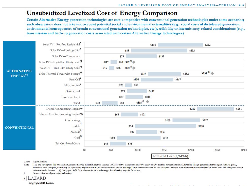 В Об’єднаних Арабських Еміратах у 2016-му на тендері виграв виробник, який запропонував продавати електроенергію по 2,4 (!!!) центи за кіловат-годину. Наголошуємо, мова йде не про собівартість будвництва, а про ціну продажу – тобто, генеруюча компанія планує отримувати свій прибуток на цих двох центах.